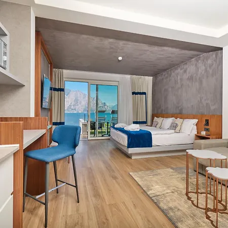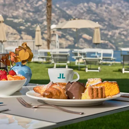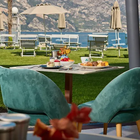 4-звездочный Hotel Castello Lake Front Malcesine с видом на горы ежедневно подает завтрак "шведский стол".